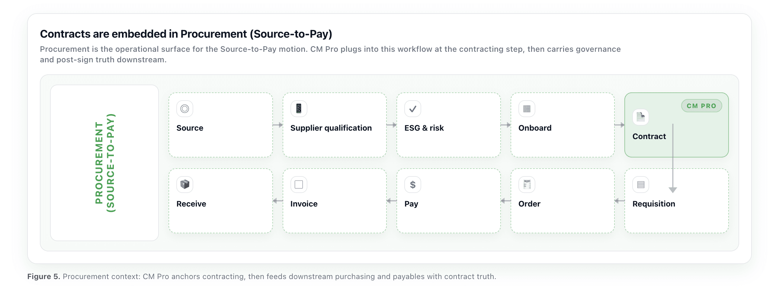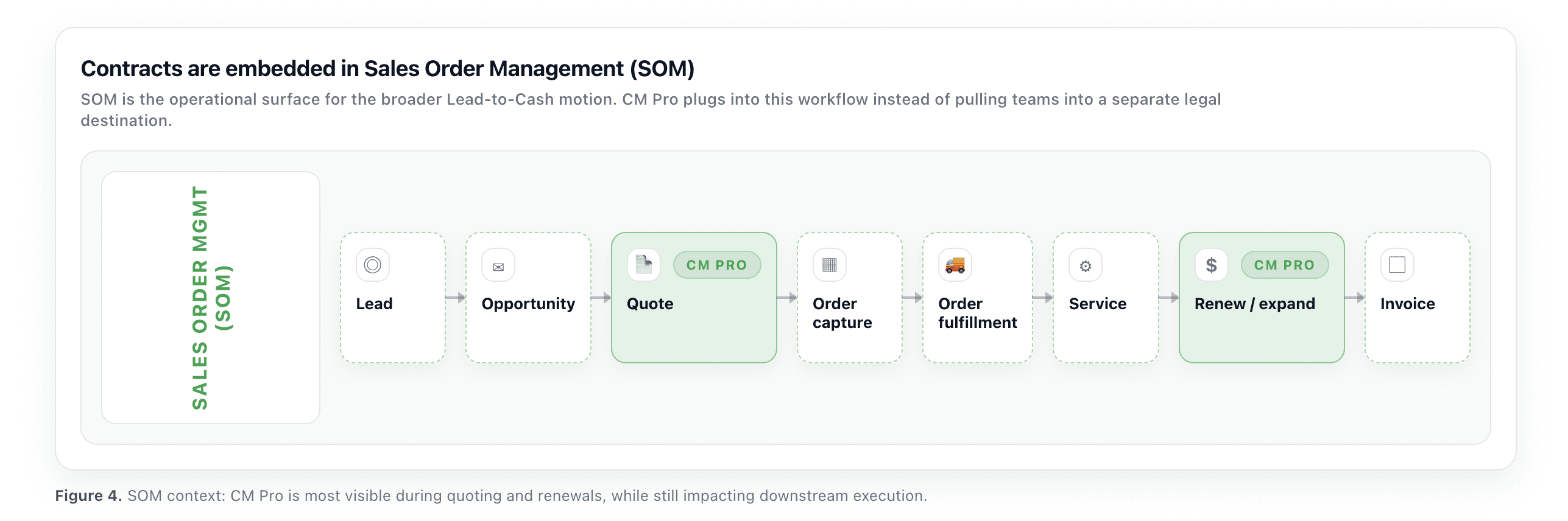 We designed CM Pro so contracting could plug into the places work already starts, especially Procurement and Sales Order Management (SOM). That way, contracting could be adopted inside existing motions rather than forcing everyone into “another legal workspace” up front.
