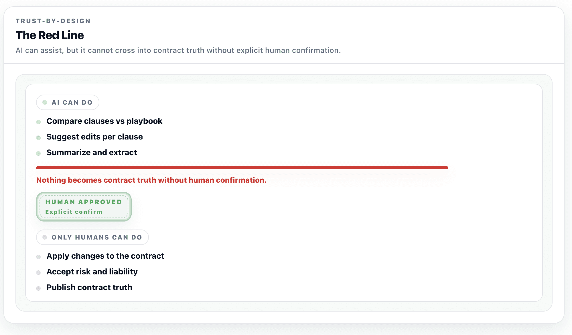 Red line: Nothing becomes contract truth without human confirmation