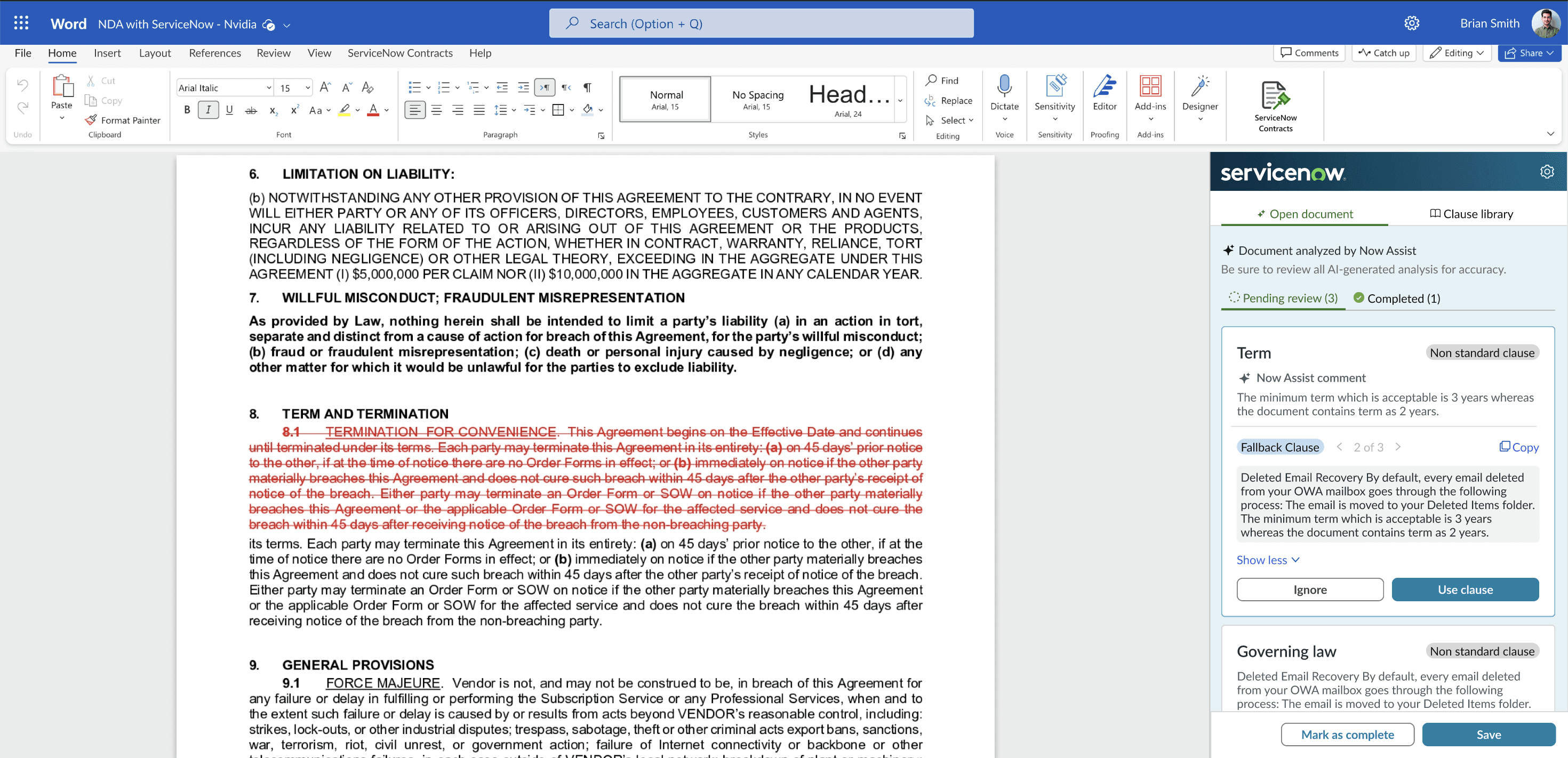 So we designed a safer posture: AI compares clause-by-clause against the playbook, flags discrepancies, and suggests fixes, but every change stays at the clause level and requires explicit human approval before it touches the document.